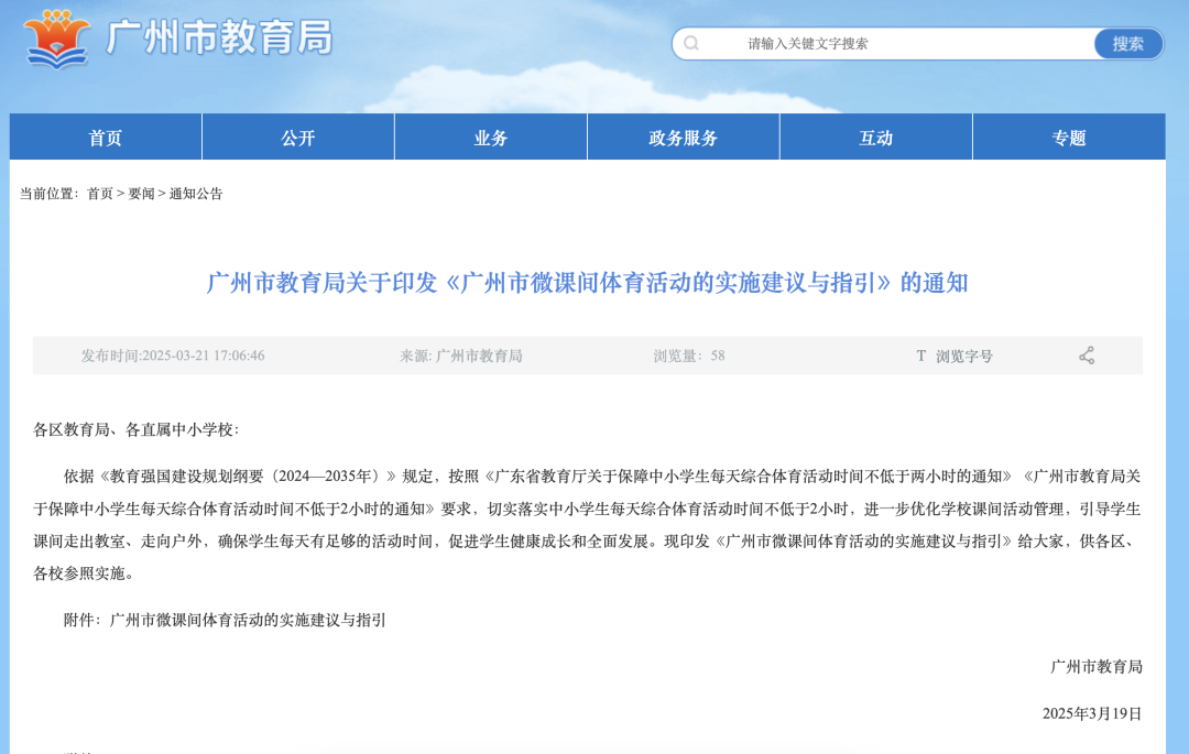 这个新学期,广州全市小学课间活动时刻融合蔓延至15分钟。怎么用好这15分钟?3月21日,广州市教授局官网发布对于印发《广州市微课间体育活动的试验提出与开辟》(以下简称《开辟》)的示知。